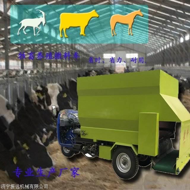 撒料车的主要功能是将成品日粮直接抛撒在饲喂区域内一次性完成饲喂,广泛用于农牧业养殖区,大中型饲养场和规范社区饲养场的饲喂作业,可将牧草,农作物秸秆,青贮饲料等纤维性饲料混合搅拌均匀后,投入本车内,进行投喂作业。使用简单方便,易于操作,产品,经久,撒料过程中可根据用户的圈宿牲畜的密度调节饲喂料,使用效率高,省时省力,节省养殖场空间。简化饲喂程序,减少饲养的随意性,使管理的程度提高;实行分群管理,便与机械饲喂,提高劳动生产率,降低劳动率成本。