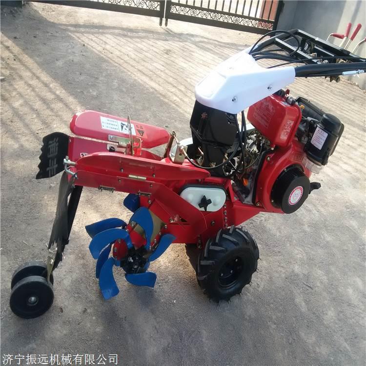手扶开沟机 多功能田园管理机(开沟培土机),主要用于经济作物开沟培土作业,根据配置不同,又可以实现旋耕、起垄等功 能,体积小、重量轻,适合多种地形环境作业,一机多是目前小型农机领域的进产品。 适用作物:大葱、大姜、土豆、甘蔗、草莓,葡萄、红薯、花卉、烟草,洋芋,辣椒等作物的开沟、培土、起垄作业,以及大棚、山地、丘陵作业。 标配技术参数:开沟宽度11-40cm(可调)开沟深度5-40cm(可调) 培土高度45cm(可调) 培土作物间距50-110cm(可调) 起垄作业技术参数:起垄高度10-45cm(可调)起垄宽度30-70cm (可调) 旋耕作业技术参数:旋耕宽度40-60-1200cm(可调)旋耕深度5-40cm(可调),特殊种植可以定做配件,达到要求。 标准配置:开沟一套,培土2套,行走轮一副,压地轮一幅,胶轮一副。 配套动力:机7.5-15马力,柴油机8-10马力 前进后退各2个档位 扶手高度可调,左右360度旋转 外形尺寸;长1680 宽560 高900mm 重量:110公斤 主传动方式:三角带 离合形式:涨紧轮 启动方式:手拉易启动 主要用于经济作物开沟培土作业,根据配置不同,又可以实现旋耕、起垄等功能,体积小、重量轻,适合多种地形 环境作业,一机多用,是目前小型农机领域的进产品。保证,欢迎前来洽谈。