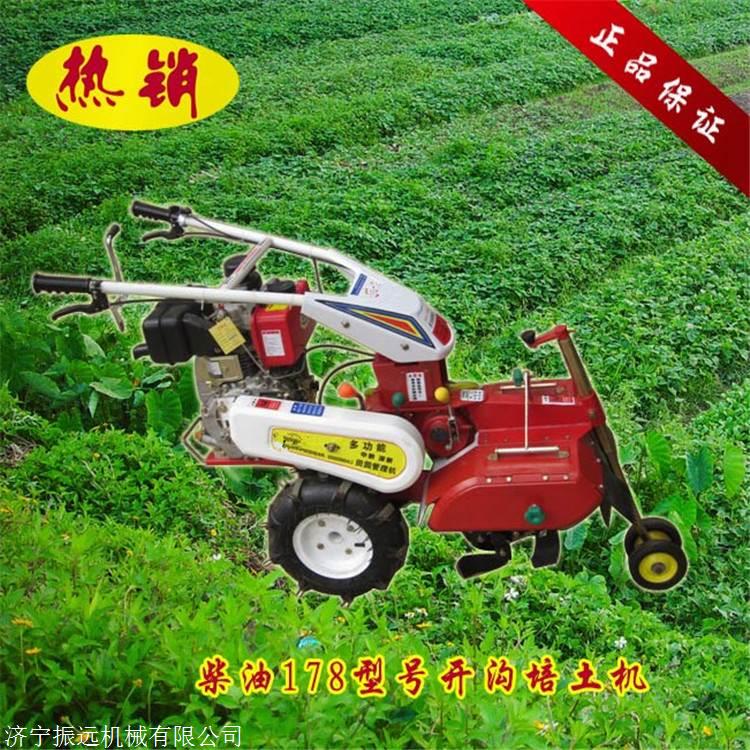 田园管理机款,可加上挂档,操作更轻松。甘蔗中耕培土机,甘蔗中耕培土,是消灭田间杂草,防止甘蔗倒伏,确保甘蔗稳产、高产的一项重要措施。为了实现甘蔗中耕培土机械化,提高劳动生产率,改善劳动条件,我们依据甘蔗生产的农艺要求,研制了一款新型的开沟培土机,一次可完成松碎土、除草、培土(有些中耕机还可进行施肥)等作业工序,大大提高工作效率和作业,节约生产成本,节本增效效果显著,适合了现代农业发展方向,不仅可满足甘蔗、地瓜、大葱、大姜、土头等农作物的开沟培土作业,同时可用于茶园、葡萄园、柑桔等挖沟施肥作业,秸秆生物反应堆技术专用开沟机,快捷,比传统作业的效率提高了10倍以上, 此系列小型开沟培土机采用国内外知名品牌的风冷柴油机或者汽油机为动力,传动方式为皮带涨紧轮,箱体采用加厚箱体,使用寿命长,产品结构紧凑,小巧灵活,结实,操作方便。可以施肥、播种、旋耕、开沟、培垄。在小块土地、大棚、茶园等地作业,不留死角,机身灵活,360度旋转,操作简单。方便好用远销20多个和地区。 开沟宽度11-45cm