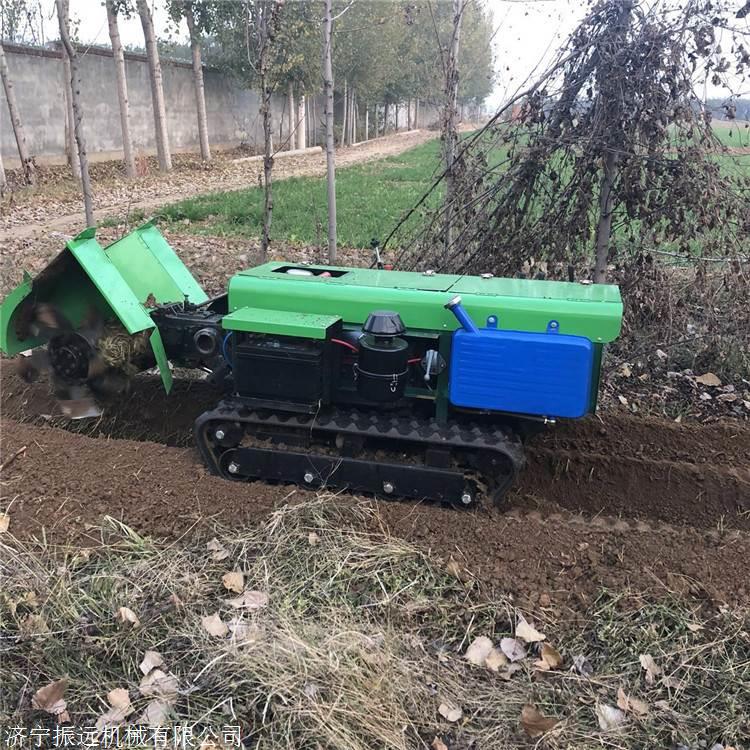 单独开沟施土杂肥、更换回填和旋耕装置后可进行回填和旋耕作业;该机体积小,个头低,操作灵便,可原地转向,适用于果园葡萄、果树、枸杞、蓝莓等经济作物的开沟施肥松土除草等作业。 履带式开沟施肥机安装上不同的配件可以进行单独旋耕、回填、单独开沟、施肥、也可混合搭配使用。产品结实,性能,操作方便。