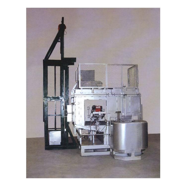 淬火炉炉由炉体、炉门、加热元件、通风机构及控制系统等几部分组成。炉体由型钢及钢板焊接而成,炉衬内壁采用不锈钢板与炉壳连接成整体,炉体及炉胆夹层内填充硅酸铝耐火纤维作隔热之用。炉门设计在炉体的下部,也就是说工件的进出是从下面进或出的。本炉体的下口开启,炉门的起闭动作采用机械传动的方式,通过电动机、减速箱、链轮、链条、道轨等完成。加热元件采用高电阻合金的电阻带,通过专用的挂钩布置在内胆的两侧,与内胆绝缘。通风机由鼓风机和导风板组成,鼓风电动机与加热元件有电气连锁,只有当鼓风机接通后加热元件才能通电,这样可保证加热元件能在通风循环的情况下工作。装料筐和进出料车由型钢焊接而成,并进行水平重心调整,上下吊动。本电炉配备料筐及料车以确保用户能及时工作。进料时,料筐装在小车上,拉出及推进,进入炉体下部时,炉门开启而转扬机工作,钩住链条,把装料筐吊入炉内,关闭炉门进行加热。出料时,开启炉门,转扬机动作,把装料筐放入水池进行淬火处理,然后把料筐提出水面放在小车的平面上,链条脱钩,转扬机提升,把小车拉出,进行时效处理。在炉体下部设有一水池,以便工件短时间内进入水池进行淬火处理。