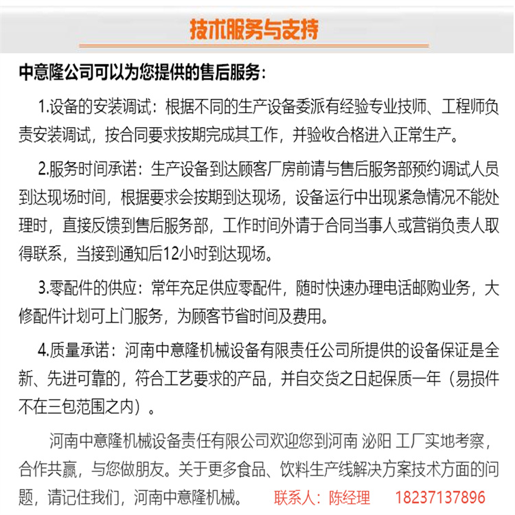河南中意隆机械设备有限责任公司位青山绿水生态县、盘古圣地泌阳县,河南中意隆机械设备有限责任公司于食品生产线、饮料生产线、果酒生产线、日化生产线、白酒酿造生产线、浓缩提取等生物发酵系统工程的交钥匙工程服务及后段包装设备的生产制造企业。包括车间规划、工艺设计、技术指导、设备供应、安装调试、技术培训、售前售后等服务为一体,为食品、饮料、医药、电子产品等后段包装提供热收缩膜包机、装箱机、纸箱包裹机、封箱机、码垛机及输送系统等后段自动化包装解决方案。
