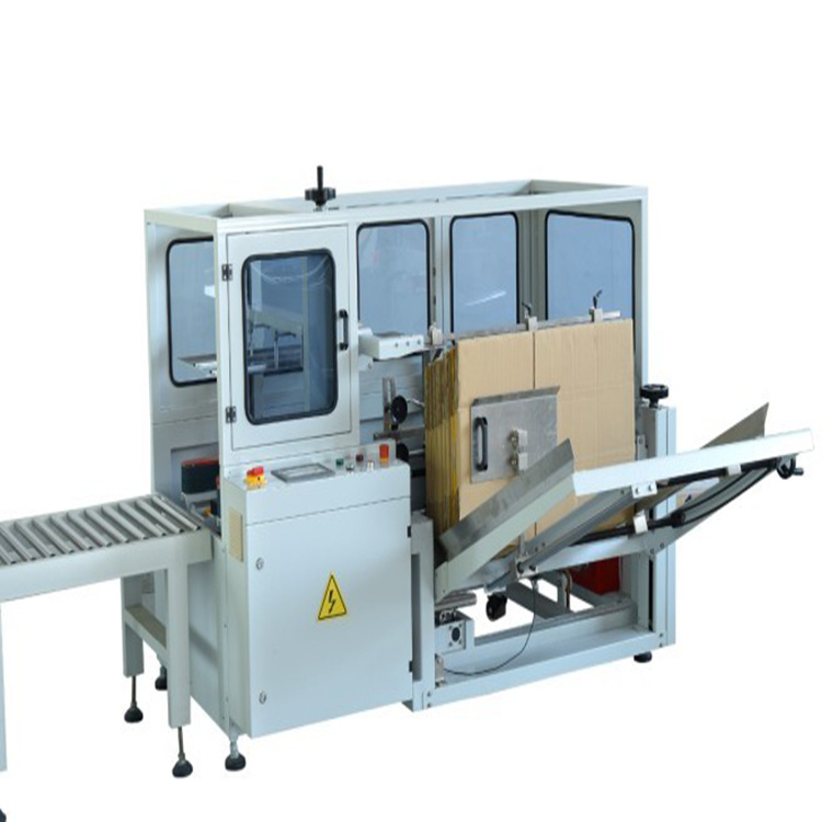 纸箱开箱封箱机的产品简介:自动完成开箱、成形、下底折叶折曲,并现时完成下部分胶带粘贴,将叠成纸板的箱板自动打开,箱子底部按一定程序折合,并用胶带密封后输送给装箱机的专用设备。自动开箱机是大批量纸箱自动开箱、自动折合下盖、自动密封下底胶带的流水线设备,纸箱开箱封箱机采用P.L.C +显示屏控制,大大方便操作、管理、减少生产人员和劳动强度,是自动化规模生产必不可少的设备。操作方便,降低包装成本。