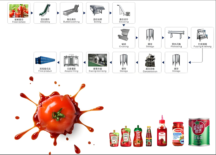 包装机:将检测合格的番茄酱产品进行包装,以便于储存和运输。