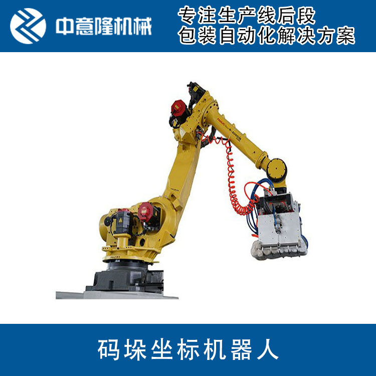 中意隆出品的机器人码垛机 全自动码垛机器人 河南中意隆码垛机 厂家直销经技术水平达到国内、国际先进水平。码垛机器人产品被认定为“国家重点新产品”,产品已取得德国TUV集团CE认证,国内外客户数已达300多家,市场覆盖食品、饮料、啤酒、饲料、化工、建材、粮油、医药、家电行业。截止目前,中意隆已连续多年成为国产码垛机器人畅销品牌,国内市场占有率名列前茅。
