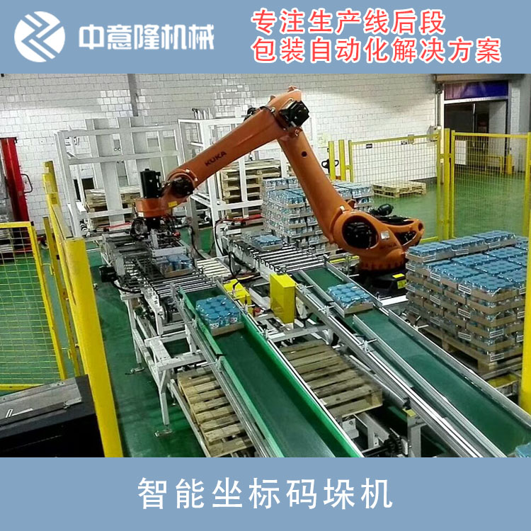 中意隆出品的水泥厂码垛机 水泥编织袋码垛机经技术水平达到国内、国际先进水平。码垛机器人产品被认定为“国家重点新产品”,产品已取得德国TUV集团CE认证,国内外客户数已达300多家,市场覆盖食品、饮料、啤酒、饲料、化工、建材、粮油、医药、家电行业。截止目前,中意隆已连续多年成为国产码垛机器人畅销品牌,国内市场占有率名列前茅。
