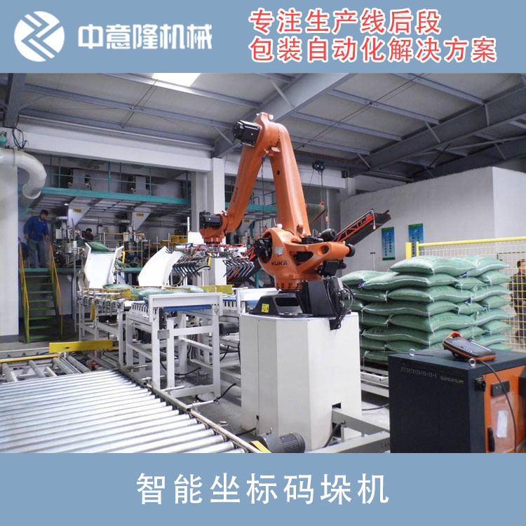 河南中意隆包装机械生产的码垛机器人,独特的线性执行机构、节能环保的手臂设计、简单的操作界面制定化抓手,可为客户不同的生产线、物料量身定制的码垛机械手 工业机器人 机械臂码垛机 高低位全自动码垛机解决方案,其的精度和速度、高效稳定的性能使一台机器人能够同时完成多条生产线码垛要求,码垛机械手 工业机器人 机械臂码垛机 高低位全自动码垛机负载能力120KG-300KG,适用于饲料、化工、粮油、食品、建材、日化、酒类、饮料、医药、家电、3C电子等行业。