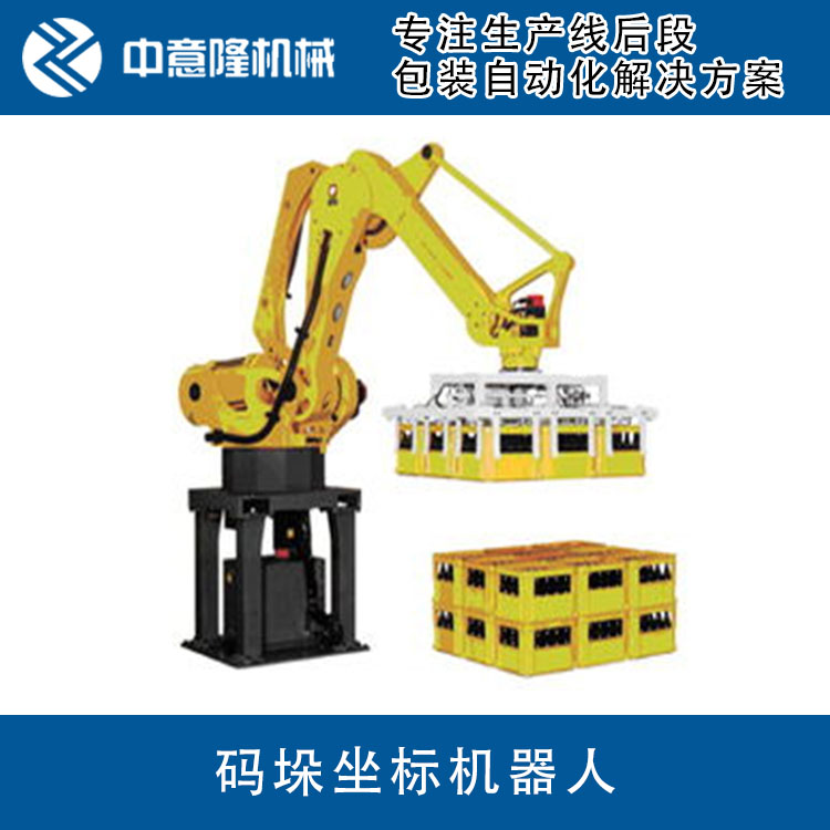 河南中意隆包装机械生产的码垛机器人,独特的线性执行机构、节能环保的手臂设计、简单的操作界面制定化抓手,可为客户不同的生产线、物料量身定制的饮料码垛机 纸箱自动码垛机 码垛机厂家 中意隆包装机械解决方案,其的精度和速度、高效稳定的性能使一台机器人能够同时完成多条生产线码垛要求,饮料码垛机 纸箱自动码垛机 码垛机厂家 中意隆包装机械负载能力120KG-300KG,适用于饲料、化工、粮油、食品、建材、日化、酒类、饮料、医药、家电、3C电子等行业。