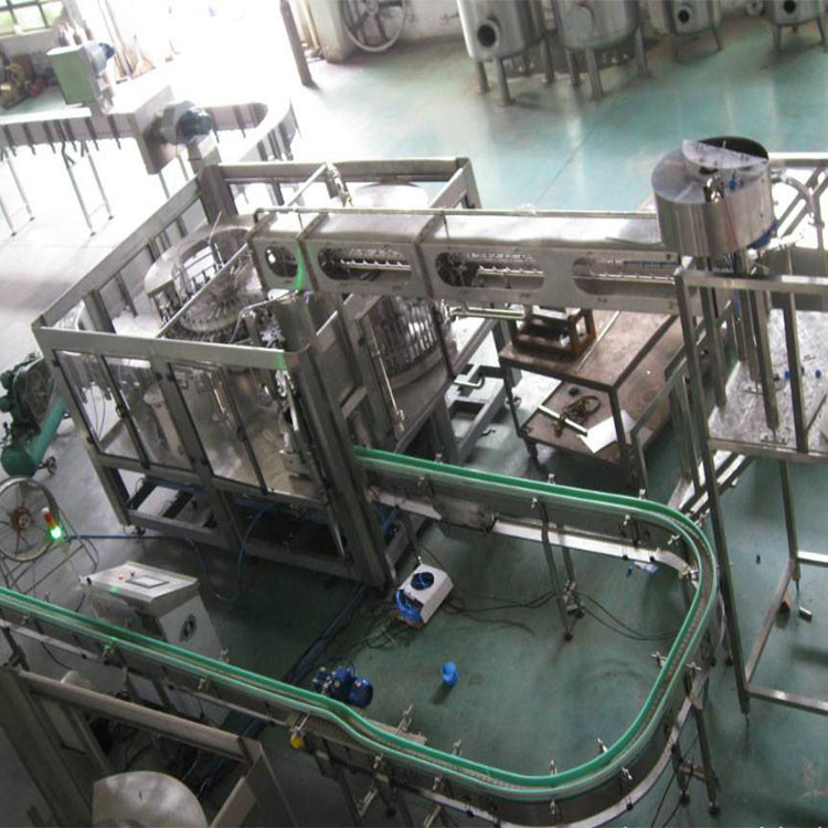 2.PET瓶装生产设备组成:自动吹瓶机、风力输送线、输盖灭菌机、理盖清洗机、冲瓶灌装封盖三联机、倒瓶杀菌机、冷瓶机、吹干机、套标机、喷码机、码垛机、缠绕机、实瓶输瓶系统、输箱系统、电气控制系统等在内的一整套灌装包装生产线。可选设备:自动理瓶机或人工理瓶系统、全/半自动洗瓶机、全自动卸瓶机、瓶仓、贴标机、纸箱包装机等。生产能力:中意隆机械公司已经形成了完整的系列化产品线,可供应能力从2000瓶/小时,到24000瓶/小时(以500ml PET瓶计算)。