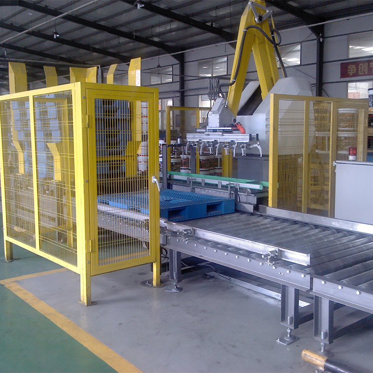①栈板由人工放置到位置上,便于码垛。