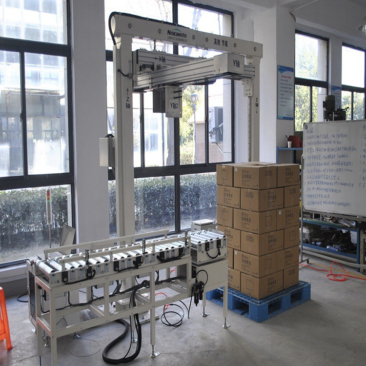 2、生产线中,进行码垛、拆垛作业的机器人码垛可以灵活布局,可以同时码垛两条线或者多条线,是生产线末端进行码垛作业的理想之选。