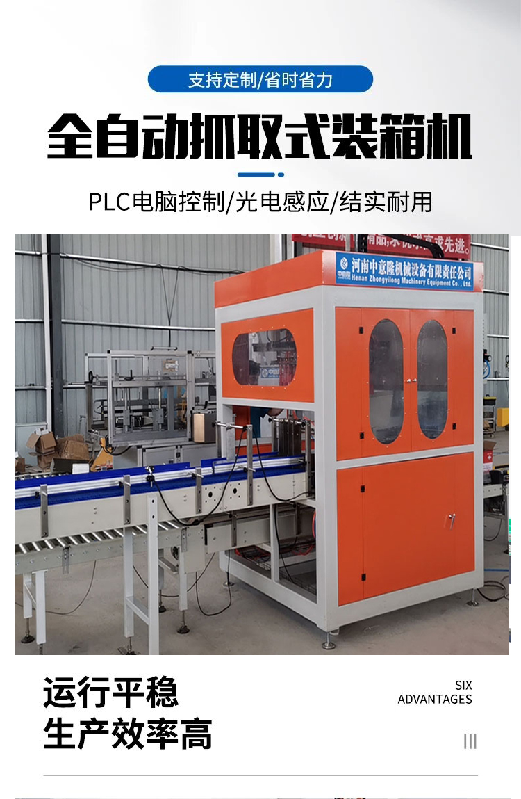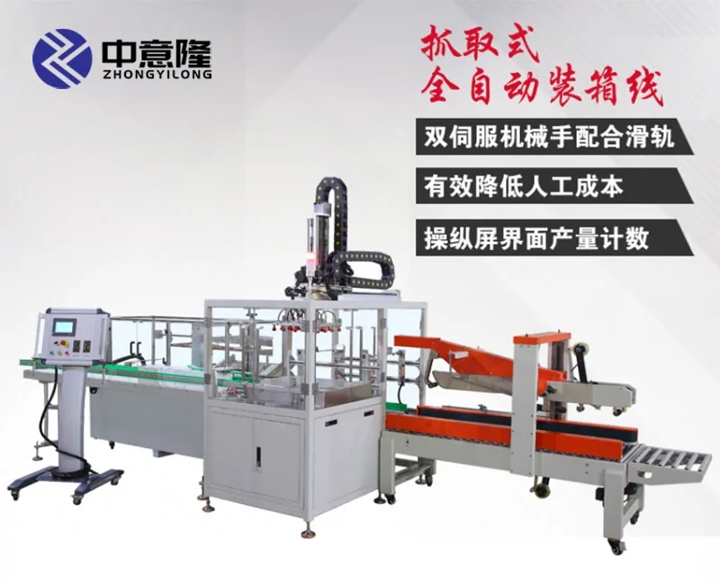 500ml小瓶水抓取式装箱机 自动开箱装箱封箱流水线 中意隆