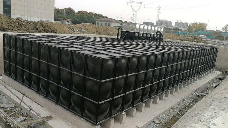 2、材料进入现场后,先把模压的板块进行拼装组合,采用螺栓和密封圈对板块密封连接的工艺,根据水箱尺寸长×宽×高进行螺栓拧接,把模压好的板块一起组合成水箱的几大板面或把压块按水箱长宽或高度分几块结合螺栓连接,后一层一层的向水箱顶部用螺栓拧接,操作时根据施工现场场地施展而定。3、几大板面拼装组合后,应做好箱底拼装连接准备,螺栓连接水箱底板时,首先对好水箱底板尺寸,然后在水箱基础上面布好底板进行密封连接,底板连接后,对密封处进行火油检验或目测检查,杜绝密封不牢等现象。