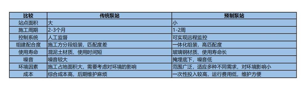 6、建设周期长。一体化预制泵站从勘察、设计、生产再到泵坑挖掘、安装、测试,所用的时间一般为半个月左右,对比传统混凝土泵站缩小超过一半的时间。