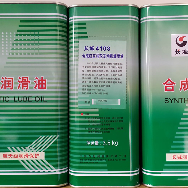 4108合成航空润滑油 Q/SH3031 0082标准 长城4108滑油4L规格 样品是一种在航空领域广泛使用的产品。它满足严格的标准要求,拥有优良的规格设计,并通过样品检测和使用效果评估得到证实。