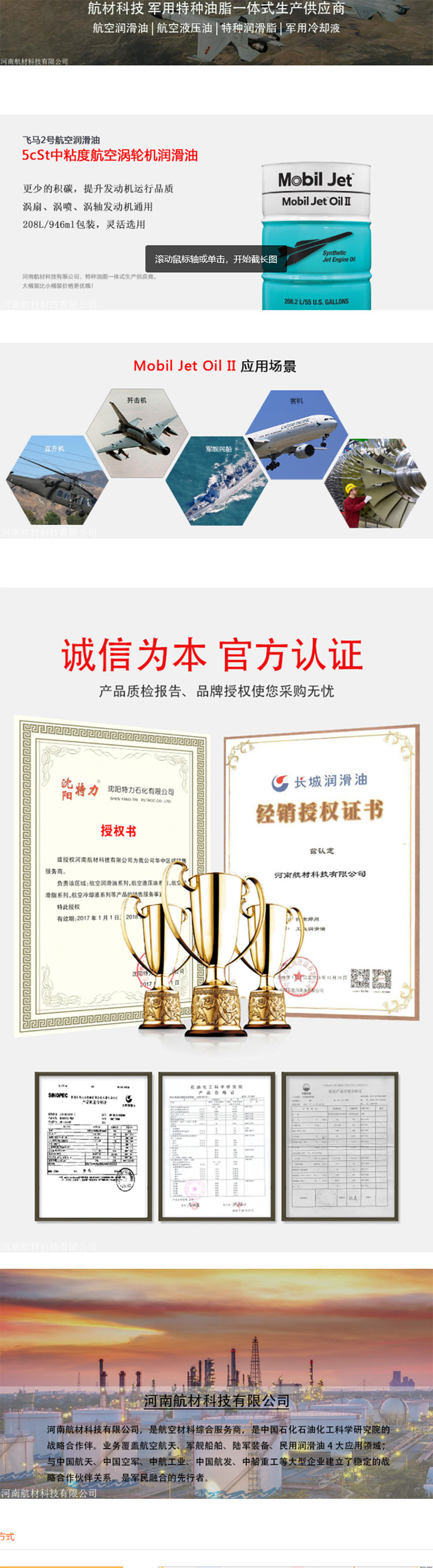 飞马2号已经有60年的使用历史了。Mobil Jet Oil II是美孚公司生产的,业内人称“飞马2号”航空润滑油/涡轮机油。该油是标MIL-PRF-23699 STD标准下的常见型号之一,在业内占有较大比重。目前仍在民航、,航和通航界广泛应用。