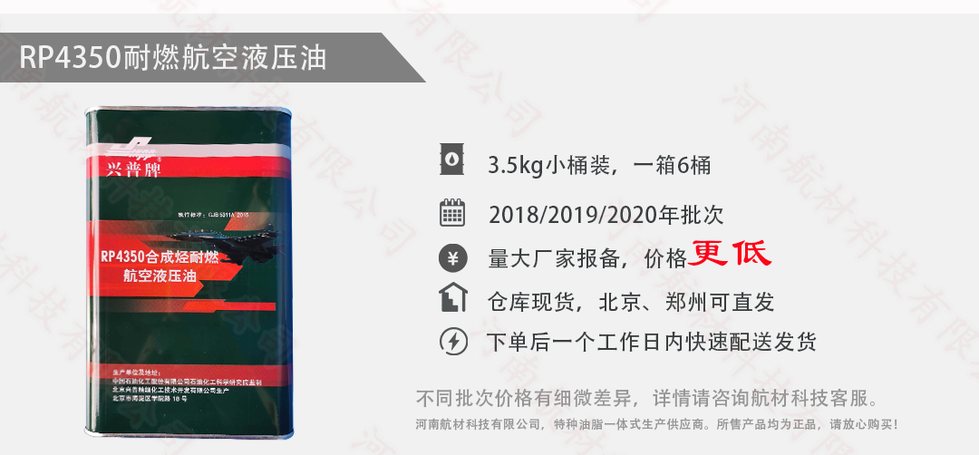 RP4350航空液压油 合成烃耐燃性能 石科院4350液压油 提供样品
