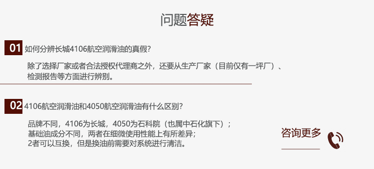 长城4106合成航空润滑油由中石化一坪化工厂研发和生产。针对喷气式涡轮发动机设计,具有优良的高低温性能、积碳抑制性能和油液稳定性能,可在200℃的高温下长时间稳定运行,是航空润滑油主力型号之一。