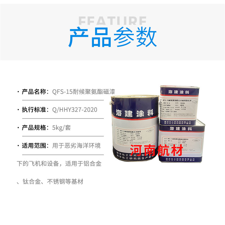 QFS-15耐候聚氨酯磁漆:高固体份氟碳聚氨酯面漆,分无光(A型)、半光(B型)、高光(C型)等类型,具有的耐候性、耐盐雾(4000小时)、耐紫外老化(3000小时)及耐机用流体性能。