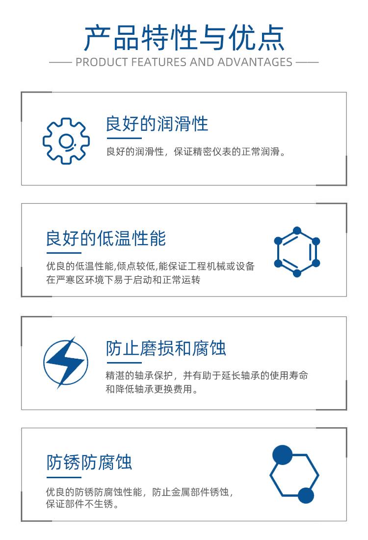 良好的润滑性,保证精密仪表的正常润滑;优异的防锈、防护性,保证精密仪表不被锈蚀;较小的摩擦阻力,保证精密仪表操作顺畅;
