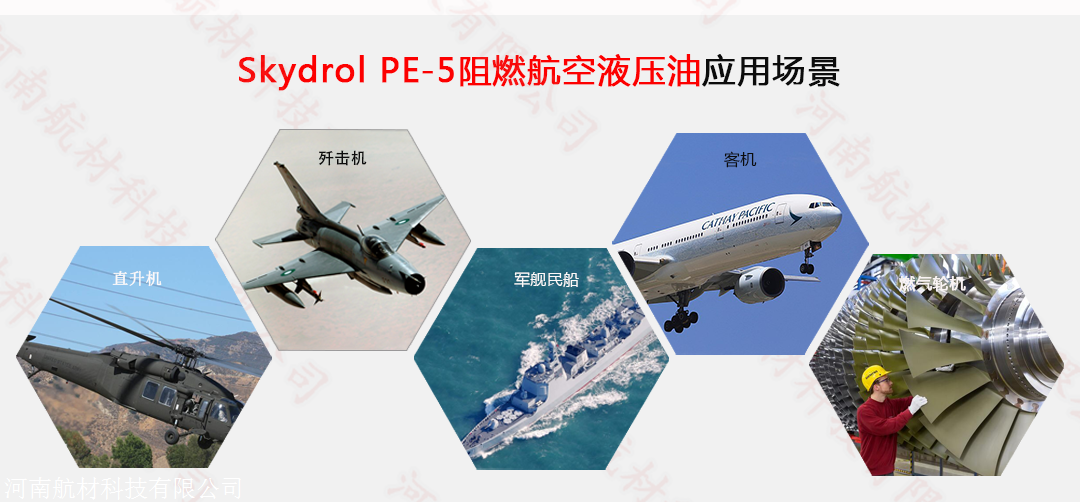 作为新一代V型阻燃液压油,Skydrol PE-5的耐高温性能和实用性能比LD-4和500B-4更好。首诺PE-5同样使用磷酸酯合成基础油,外加各种添加剂制成,具备优异的高温阻燃性能。值得称道的是,该产品可与LD-4和500B-4等IV型磷酸酯阻燃液压油兼容使用。目前PE-5已经被,、民领域广泛应用。特备是针对直升机等低空飞行的飞机,阻燃类液压油具备更好的安全性能。