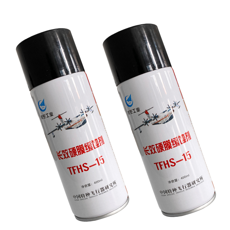 TFHS-15硬膜型缓蚀剂是参考MIL-DTL-85054和 BMS3-35等标准研制的干膜水置换型缓蚀剂,同时拥有重型缓蚀剂的优点,主要用于飞机结构腐蚀重点部位的长效防护。该产品可以渗透进极小的缝隙和孔内,将其中滞留的水置换出来,溶剂挥发后在表面形成一层很薄的防护层。可代替水置换型和重型双层缓蚀剂体系,不仅可以减少喷涂的工作量,而且对飞机重量增加较小。
