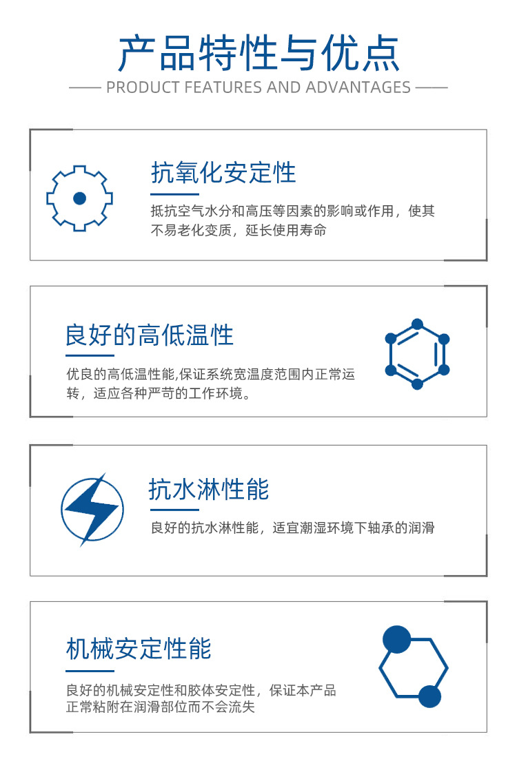 1.良好的高低温性能,保证轴承在宽温度范围内的正常润滑;