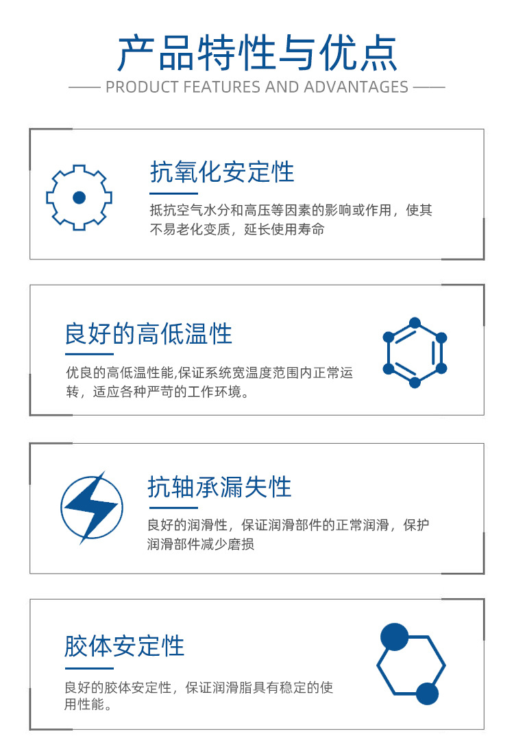 ◎ 优良的高低温性,保证润滑部位在宽温度范围内的正常润滑