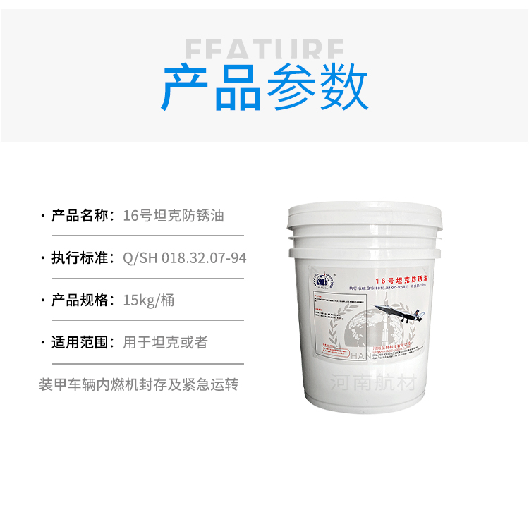航材自营16号防锈油可用于tanke或者装甲车辆内燃机封存及紧急运转, 以及其零部件的防锈贮存