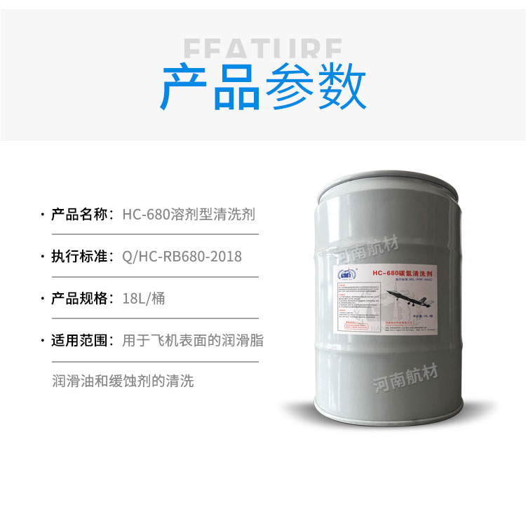 HC-680溶剂型清洗剂是针对金属零部件的清洗需求研制的高闪点溶剂型清洗剂,各项性能指标均符合MIL-PRF-680C和HB20542航空用高闪点清洗剂的要求。