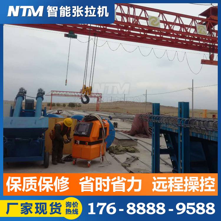 智能张拉是指不依靠人工手动控制,而是利用计算机智能控制技术,通过仪器自动操作,自动完成钢绞线的张拉工作,方便的操作,根据梁场信息管理中心下发的张拉数据,现场输入箱梁梁号、梁型、孔道并校核张拉力目标值及伸长量值后只需按下按键,张拉过程全自动完成无需配备技术人员,即使是工地上文化素质不高的普工也能够轻松操作