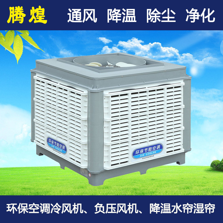 利用水的蒸发降温,在我们日常生活中应用已经很广泛,当我们站在海边时感觉特别凉爽,水涂在皮肤表面风一吹就感觉很凉快,这就是水的蒸发过程中,吸收了空气中的热量,使空气温度下降, “腾煌”节能环保空调机的降温原理就是利用这一种自然现象,将高科技与直接蒸发制冷技术相结合,开发出集降温﹑换气﹑节能环保于一身的空调机.