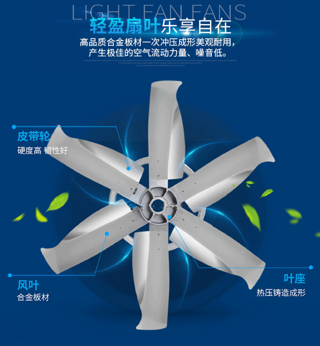 二、根流体力学(风流原理);采用CAD/CAM优化设计制造出角度、风量、噪声均合理的叶片,以航空压铸铝为叶片材质,不老化、不变形,所匹配马达仅为1.1KW。