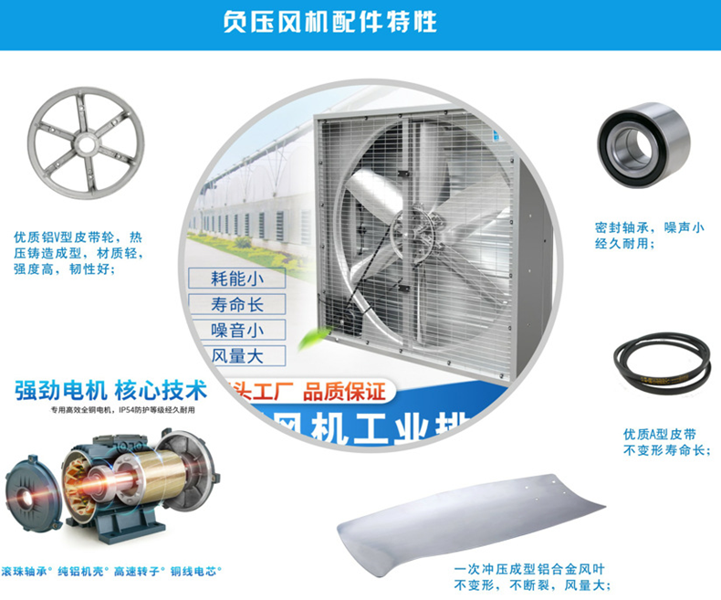 (二)超耐用:负压风机采用重铝压铸叶片,耐高温、不老化、不变形。