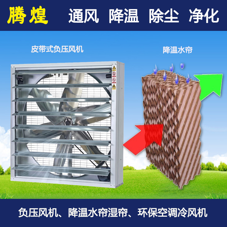 2、配合水帘使用:用作车间降温炎炎夏天,不论您的车间有多热,水帘+负压风机系统都可让您车间的温度降至30C左右,而且有一定的湿度。