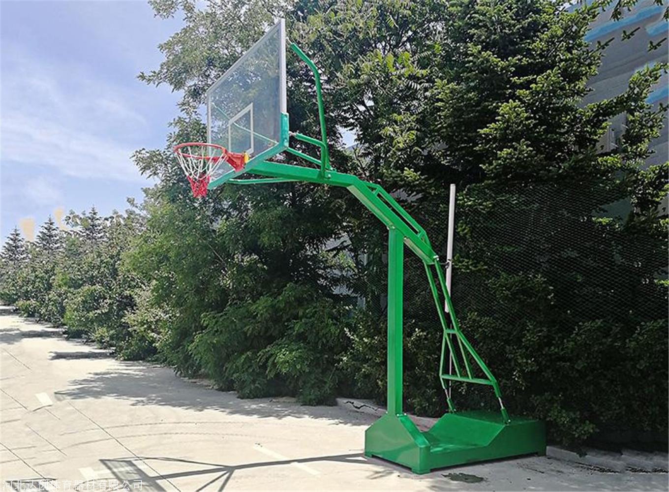 确定好后进行挖坑工作。预备好浇注的混凝土,标号C20以上,下预埋件时留意单孔朝前,放到坑内,两边都放好后再次测量间隔是否符合29.6米的尺寸,如确认无误便可以开始浇注,留意预埋件的水平度。完事用平抹把预埋件周边的水泥抹平,应与地面的高度平行。干燥期,室外温度零摄氏度以上干燥期为3-5天,零摄氏度以下5-8天,干燥后进行架子的安装。安装场地附近干净利索,尽量减少职员和车辆通行,安装时应小心谨严,以免伤人,带箱体的篮球架安装顺序,箱体、立柱、探臂、后拉杆、篮板、篮筐、上拉杆、下拉杆、加配重。钢化玻璃篮板安装时五个连接点要在一个平面上,五点受力要平均;探臂、篮球板、篮球圈要成一线。内蒙古移动式篮球架国标篮球架厂家