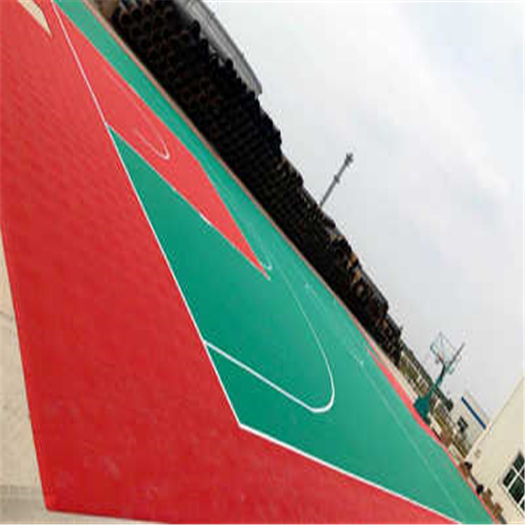 产品预制成品,质量容易控制。基础要求不高,场地稍微平整即可施工。悬浮地板篮球场地铺装和维护方便容易。拼装地板篮球场拼装地板成品为块状,规格、颜色多样,量身定制,可直接铺装在水泥或沥青的基础表面,无需粘接,每一块地板之间用的锁扣进行连接。