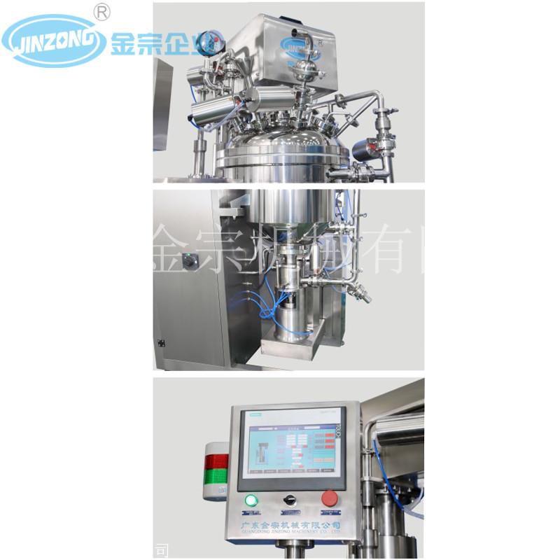 1.均质机采用德国进口核心部件,转速可达rpm/min,高剪切涡流式乳化双向刮壁搅拌桨,自动紧贴锅底及锅壁;