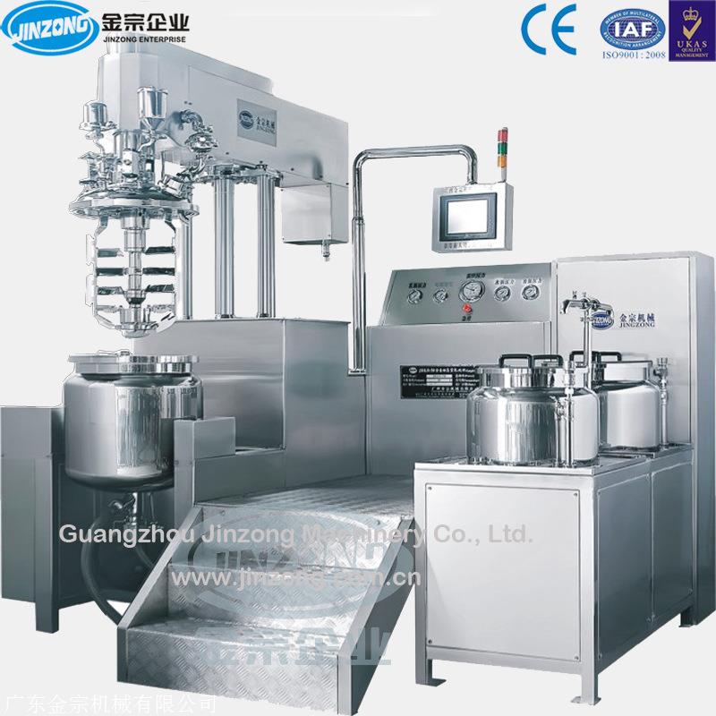 广州金宗机械有限公司供应的全自动可倾式上均质真空乳化机系列产品选用UH型均质机,采用全方位刮壁搅拌均质结构,物料翻滚无死角,该乳化机自动投料、出料、清洗系统、液压升降、倾倒系统,外观整体设计等均符合GMP、FDA规范,是化妆品、制药及化学工业中制造高档膏霜、软膏类产品的设备。
