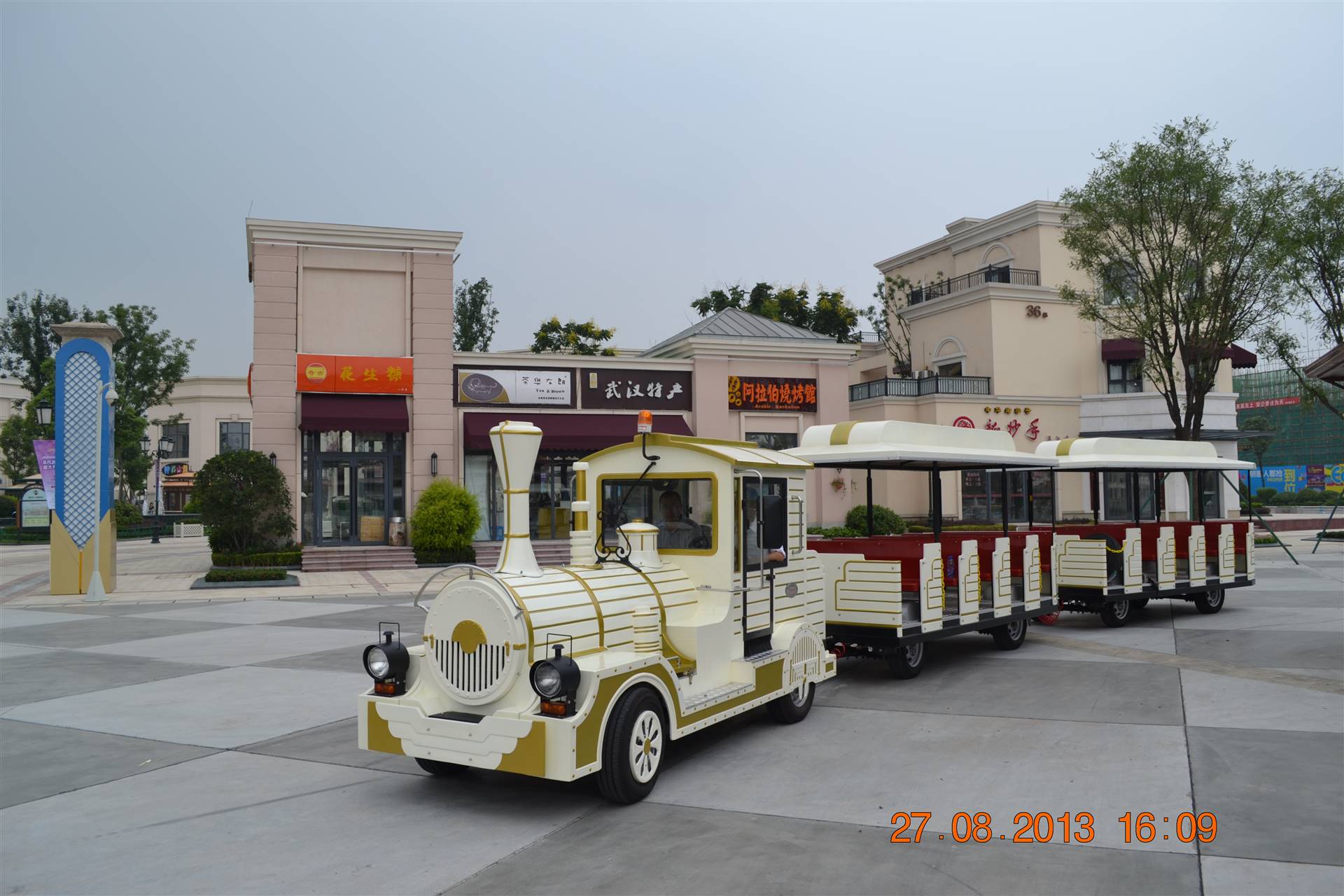 观光列车外观应光滑,装饰件镀层符合设计要求,油漆均匀、漆膜附着力不低于GB/T9286标准的2级要求。观光列车所使用的玻璃钢零部件应表面平滑、色泽均匀,树脂与增强纤维及填充物不得有开裂、剥落、裸露等缺陷。所选用玻璃钢制品应通过耐湿热性能、耐候性能和冲击后压缩性能。车架、车身骨架结构应选用金属材料,金属材料制造的车身、骨架、覆盖件等结构件表面应进行表面防腐处理,防腐层应符合设计要求。