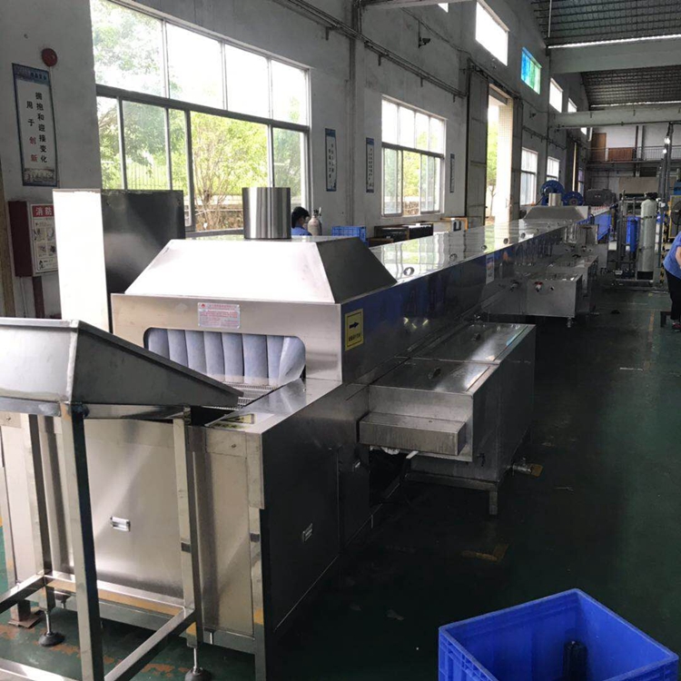钢管内外壁清洗机、通过式五金管件除油清洗线是一台通过式超声波喷淋清洗设备,采用链条传动输送工件,具有超声波清洗、超声波清洗噴淋清洗工艺等功能的新颖连续式清洗设备。由上一工序将工件移至传动链条上,链板固定设计,工作时,清洗工件置于输送链网上,依次通过清洗槽、爬坡时喷淋、过水槽,完成清洗、过水等流程,回液经净化处理可循环使用,各槽设有不锈钢雾气罩。该机具有工位多,功能全,结构合理,操作方便,清洗效果好的优点,这对于流水线零件的清洗,改善劳动环境,提高清洗质量,降低清洗成本、减轻劳动强度具有重要的意义。