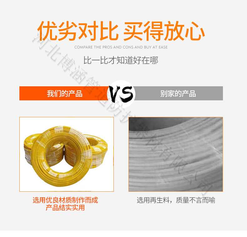 该产品采用高强度、耐老化的PE100材料,色泽均匀,耐磨性和防腐性特别突出,长期铺设在地下,寿命与