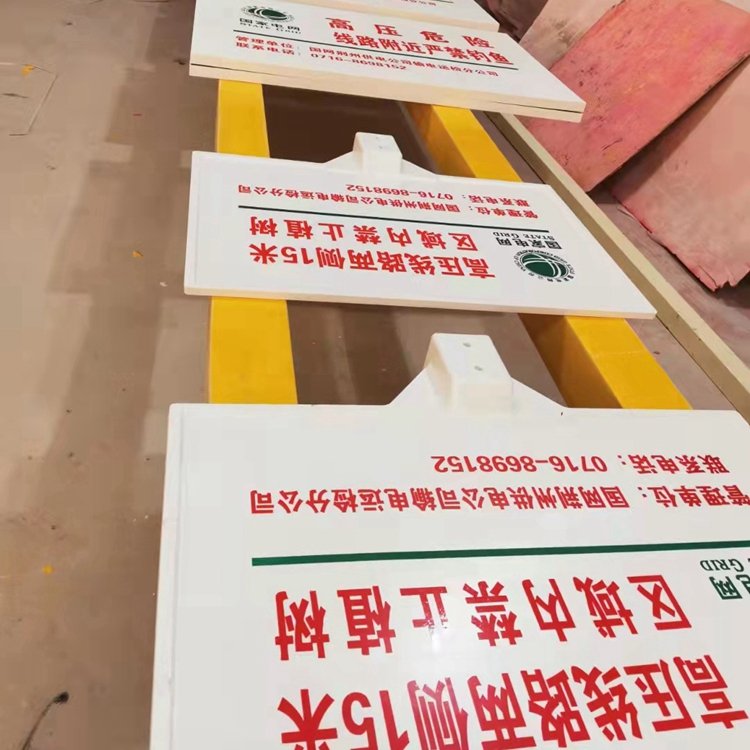 常见的警示牌通常是玻璃钢警示牌,广泛应用于电力,铁路,石油,燃气旁起警示作用。内容可根据客户需求修改。玻璃钢警示牌采用优异的绝缘材料,高性能的绝缘电阻防止漏电,在高频下能保持良好的介电性能,不反射,不阻断微波的传播,不生锈长期使用安全。