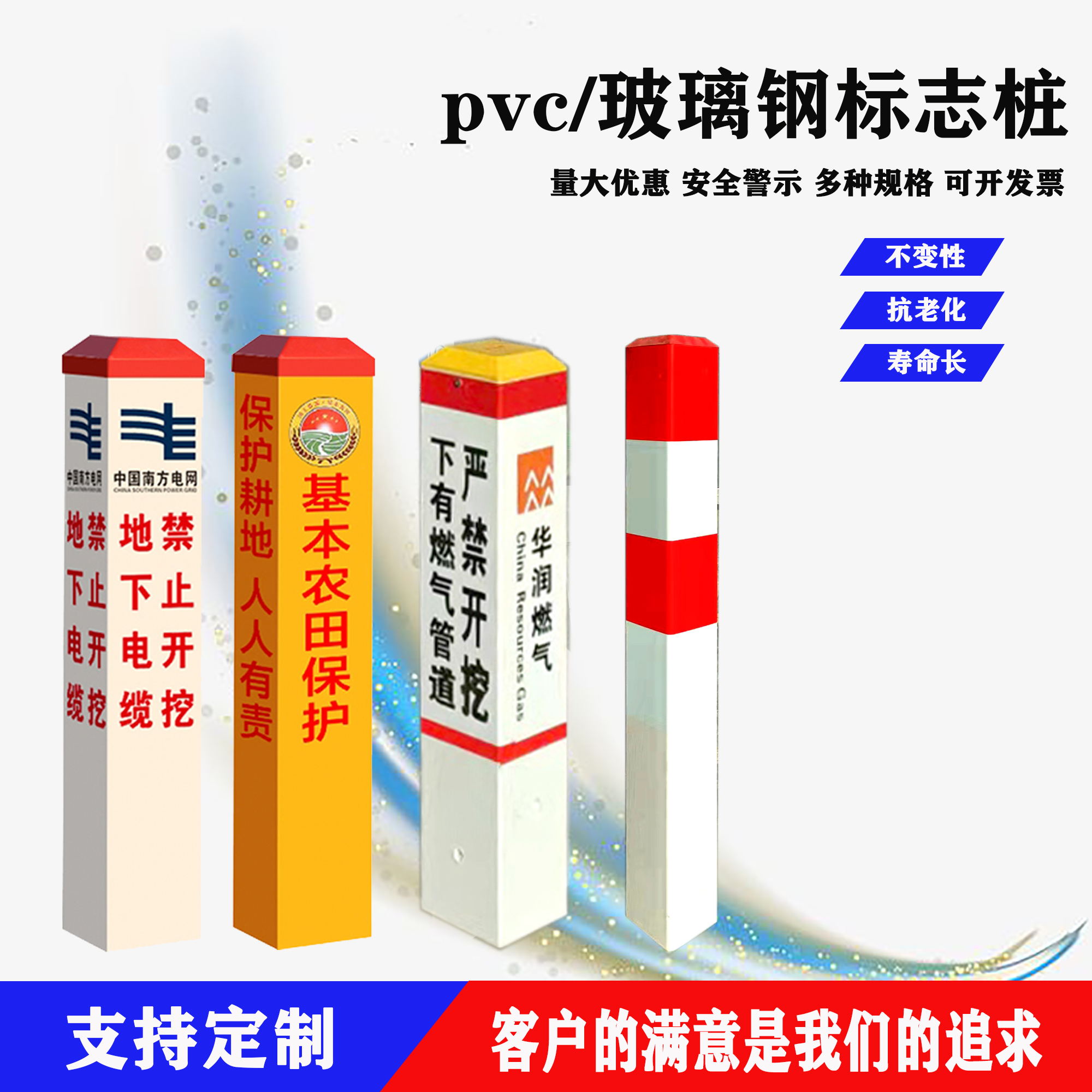 包印字、印LOGO不管数量多少无限接单,生产各种PVC塑钢标志桩、玻璃钢标志桩,