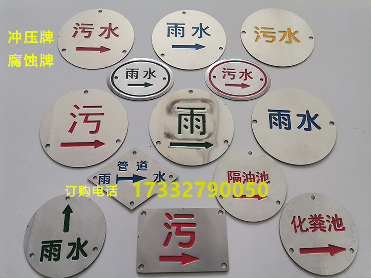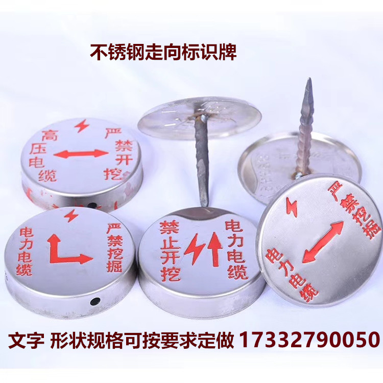 博涵 不锈钢地贴冲压牌 雨水污水标识牌 高低压燃气电力电缆走向牌
