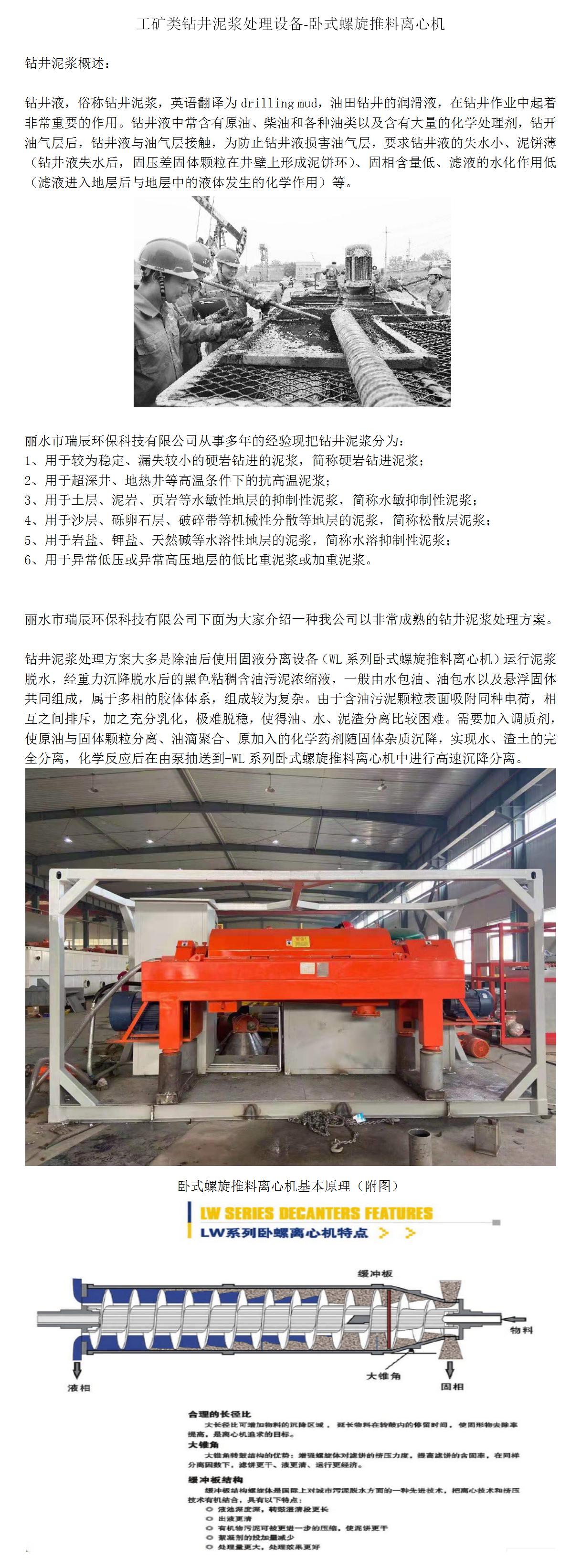 丽水瑞辰生产的WLNJ系列泥浆固化脱水设备结构合理,技术先进,制作精细,对泥浆分离适用性大,分离效果好。