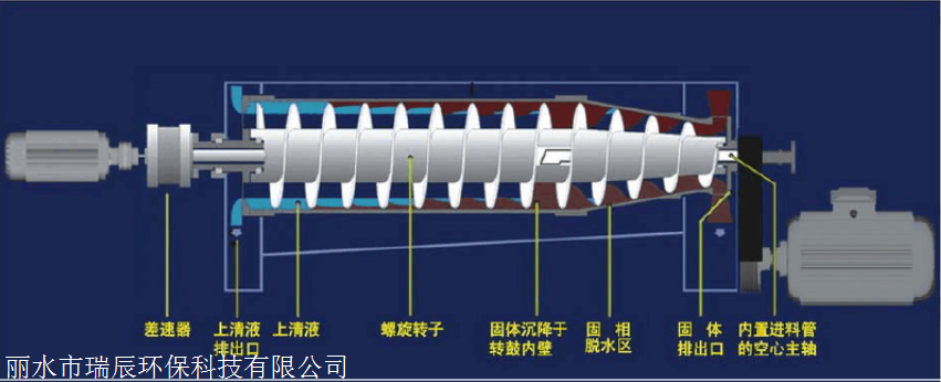煤矿井下泥浆处理设备第三代煤矿煤泥脱水设备煤矿煤泥脱水专用脱水机(洗煤污泥脱水机)描述:煤矿煤泥脱水分离专用离心机,主机有柱-锥转鼓,螺旋卸料器、差速系统、轴承座、机座、罩壳、主付电机及电器系统构成。在新型离心式煤矿煤泥脱水方案 第三代煤矿煤泥脱水设备高速旋转而产生强大离心力的作用下,使得煤矿废水进行每天24小时的连续脱水。主电机通过三角皮带转动转鼓,通过行星齿轮差速器与付电机产生转鼓与螺旋差速实现煤矿废水分离和推料功能。