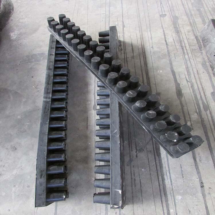 产品规格:钉型氯丁橡胶减震板顶部直径30mm、底部直径40mm,高50mm,橡胶钉中距为50mm;板式橡胶支座高30mm,减震板长度可根据图纸要求订做。