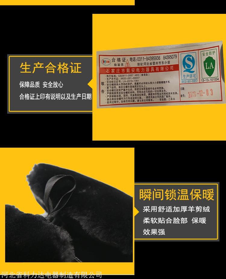 4.佩戴者在使用时一定要将防寒安全帽戴正、戴牢,不能晃动,要系紧下颚带,调节好后箍以防防寒安全帽脱落。