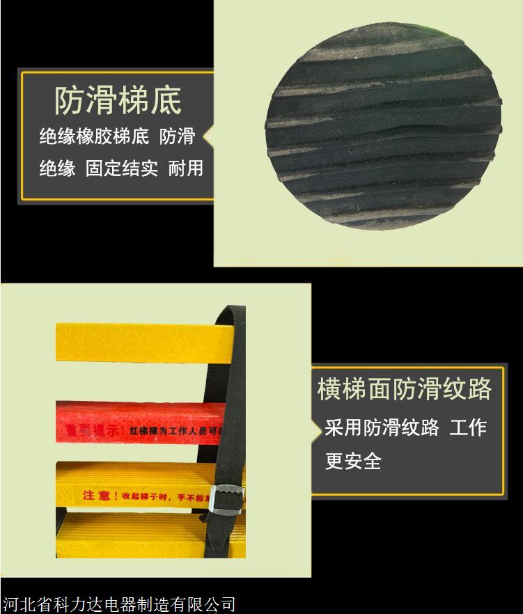 科力达品牌KLD-圆管竹节绝缘梯的设计特点其实我们都可以比较直观看出,主要就是以不导电设计,实现了很好的绝缘防护,梯子的使用安全性有很好提升,成为特殊作业环境中的理想选择,加上梯子的设计美观大方,能够很好地保障日常应用需求。从这种绝缘的梯子设计性能看,很好地考虑到了使用环境情况,耐腐蚀以及耐酸碱性也都得到了提升,支持比较长时间的使用,质量也都有保障。